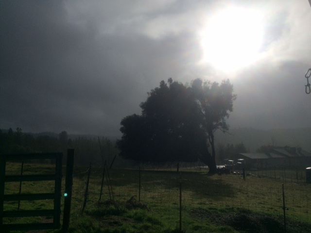 There was a stranger in our midst in the mists of morning yesterday. A blue heron had been at the goat trough and took off flying in its peculiar Z-shape when I approached. It was a rare and special sight.
